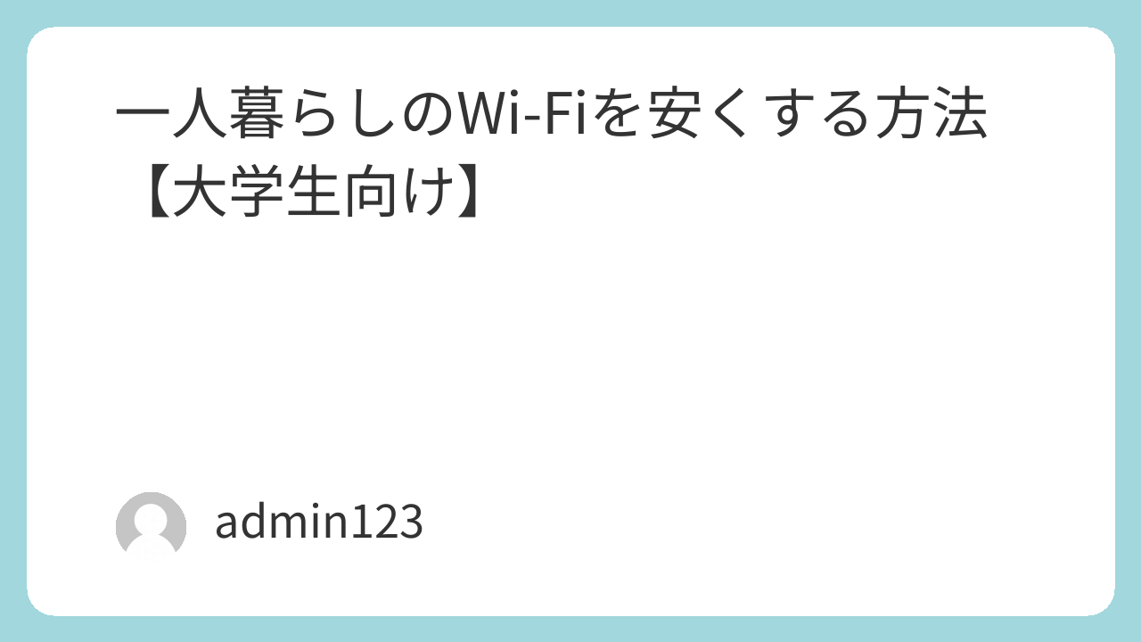 一人暮らしのWi-Fiを安くする方法【大学生向け】